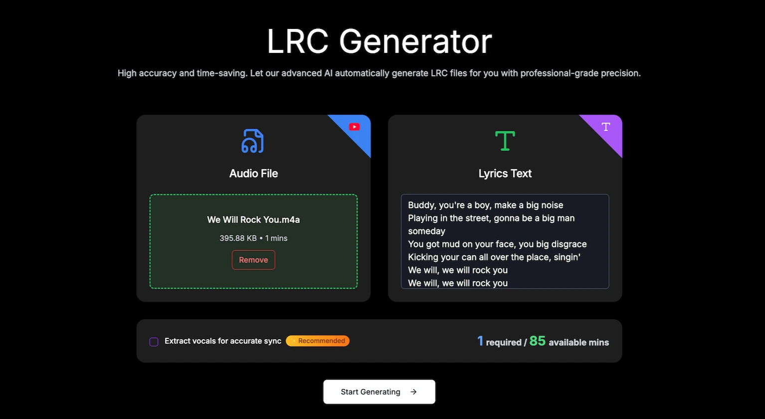 Method 2: Create an LRC file with Online AI LRC Generator