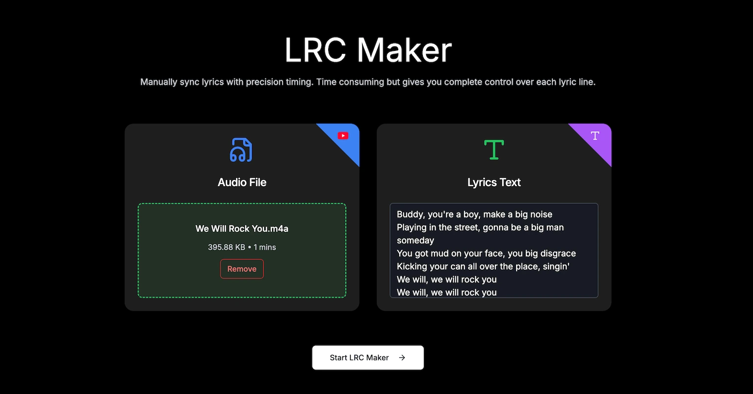 Step 1: Go to QuickLRC Manual LRC Maker